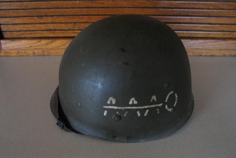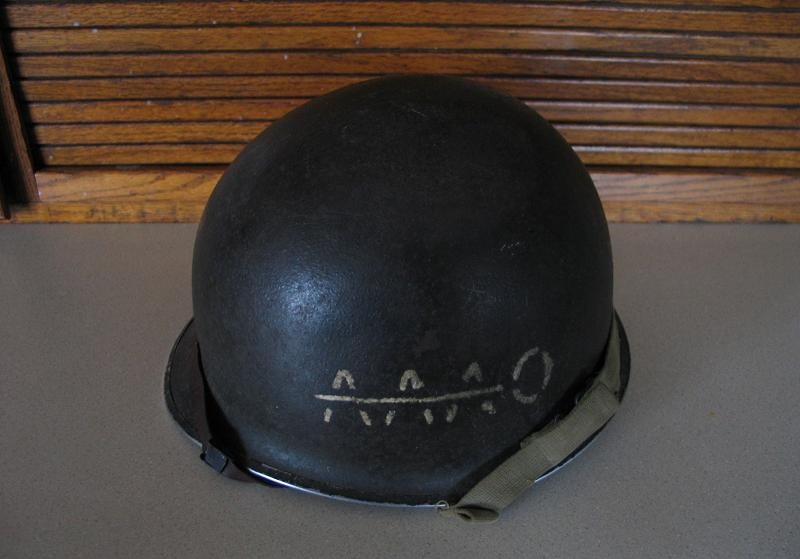 Famous 39th Regiment slogan A-A-A-O, -"Anything, Anytime, Anywhere, Bar Noting"- stenciled on both the liner and the helmet shell.