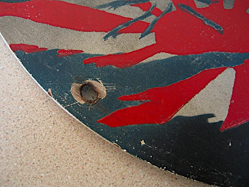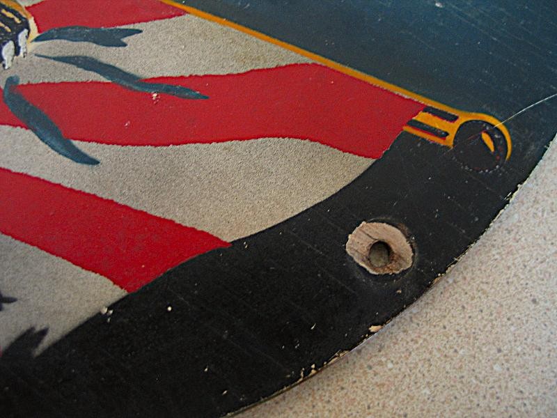 WWII US Navy USN PT Boat MTB RON 43 Squadron Insignia Placard. Made of plywood. Measures 13 inches in diameter. Four holes drilled for placement on the PT Boat cabin. There would be two for each PT Boat. One placed on each side of the cabin. Twelve boats in a squadron. Twenty-Four in total existed at one time in history. Making this an exceptionally rare item for the PT Boat collector. These were removed once the boats reached a combat area. Very good condition.